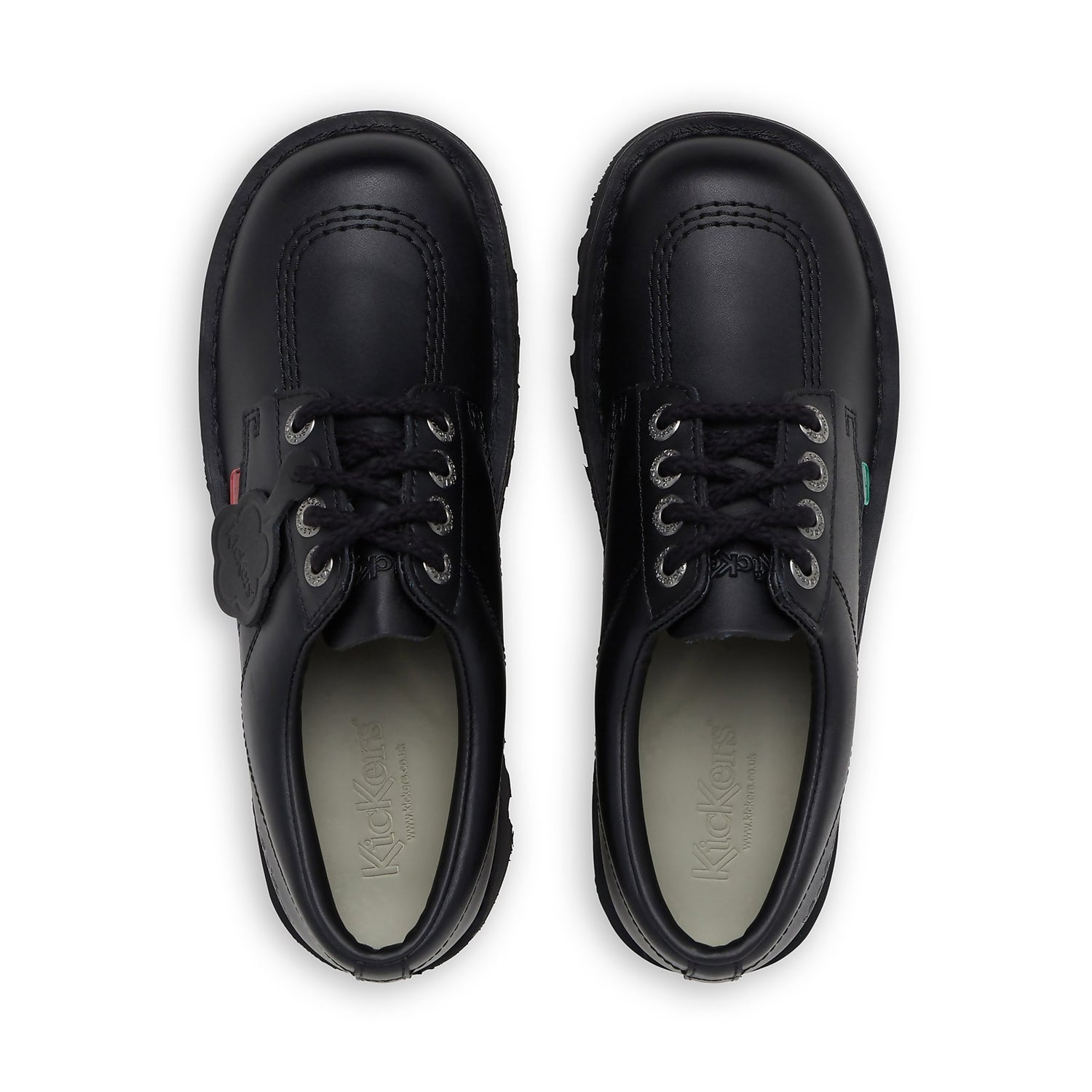 There's only one way to do back to school, and it's always with Kickers. Our Kick Lo has forever been a formal fave - packed with features that give it a smart silhouette but still in a style you'll actually want to wear. This pair are constructed in all-black leather, featuring all the trademark branding that makes us so iconic. From our signature triple stitch to the branded eyelets, we pay attention to ALL the little details to make a pair you can love for ages. Finished with a classic lace fastening, padded collar for all-day-comfort and our instantly recognisable chunky sole that will keep you stepping out in hardwearing, stand-out style.